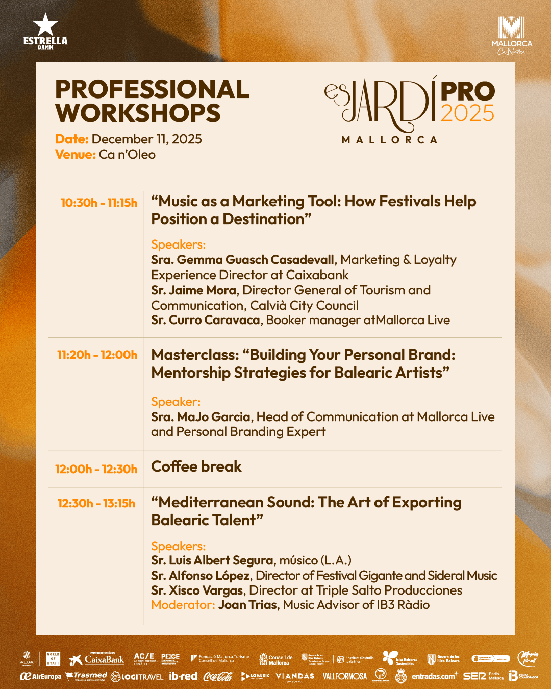 The second edition of Es Jardí’s in-person professional sessions is here. An event designed to share topics of interest among music industry professionals and enjoy a day of networking with specialized speakers from the sector. A meeting to learn, connect, and continue driving music forward.